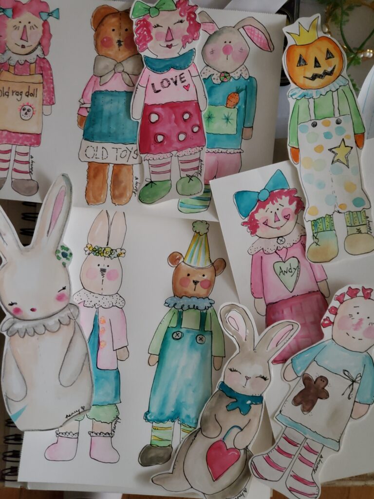 I’m reimagining my original fabric doll designs into paper doll bookmarks — turning stitches into paper stories.