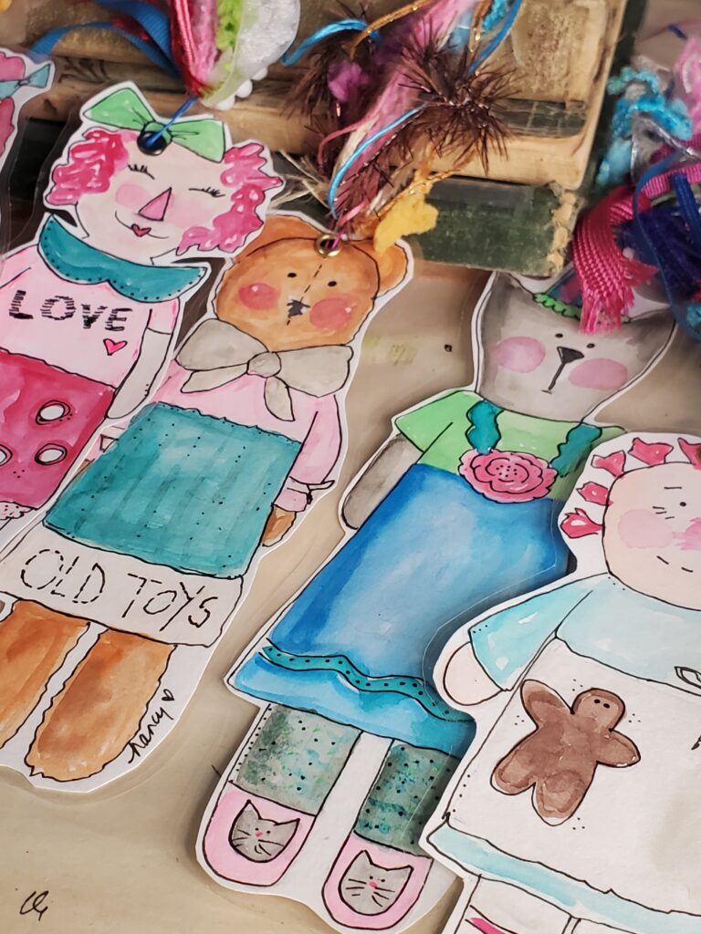 They’re available now in my Etsy shop. Hand-painted Paper Dolls with Tassels for Junk Journals. Bookmarks. Journal Tags.